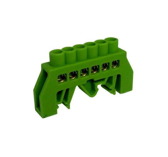 BARRAMENTO TERRA 06 POLOS 80A VERDE PARA TRILHO DIN
