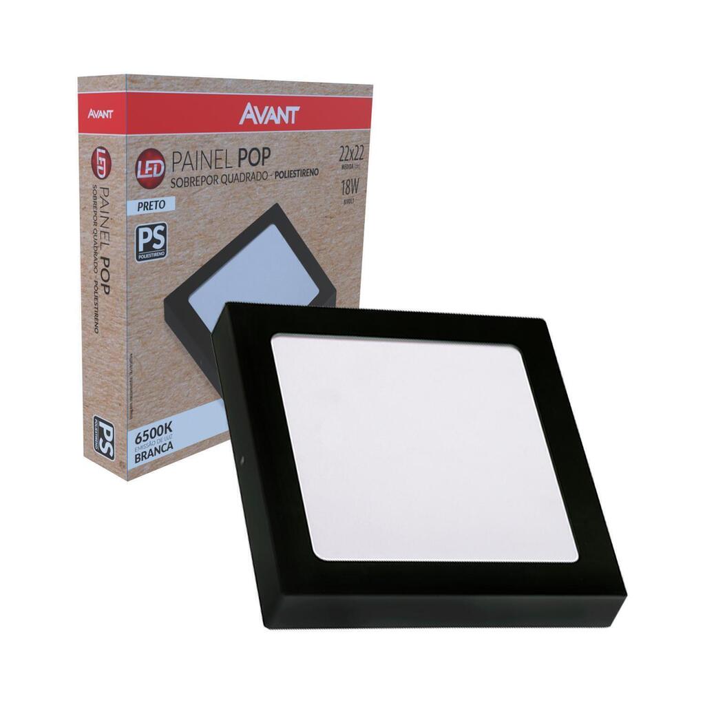 PAINEL LED SOBREPOR QUADRADO PRETO 18W 22X22CM 6500K